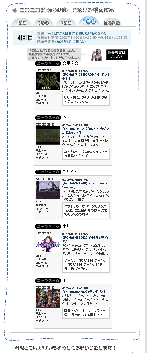おはようございます(||゚Д゚)ノ ロハン公式のBIG5ですがなかなかチャンスアイテム当たりませんね・・・・ 最初の頃は永久カバンなどよく当たっていたのですが・・・・ で、当たらないな・・・・ と思っていたら・・・・・・・・・・∑(`□´;) NEWSに注目です! オリンピックに便乗してアイテムの販売をしたいようです・・・・ って!!!!∑(`□´;) 確立が大幅に ダウン!! ∑(`□´;) 下がったんか!!(||゚Д゚)ヒィィィ! いくらなんでも正直すぎだろwwwww がっつり儲けます!ってwwwww まぁ、ただの入力ミスだと思いますけど これを見た以上BIG怖くて出来ませんwwwww やってみた方は情報求むwwww |